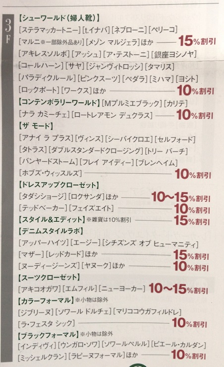 新宿高島屋のウエルカムデイズのブランドと割引率を紹介しています