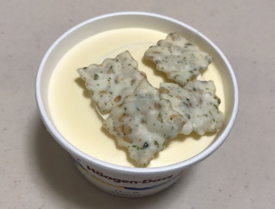 わさびセサミスナックをバニラのアイスクリームにトッピング